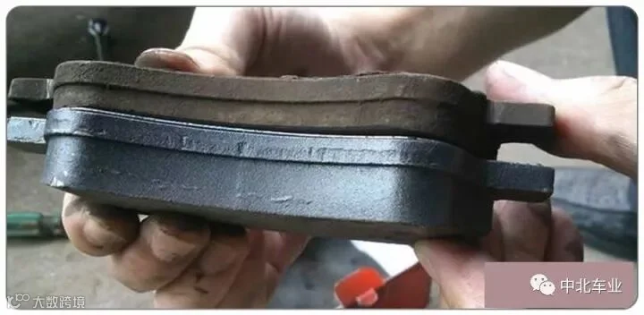 碟刹的刹车皮摩擦层剩余厚度是否足够,以3毫米为基准点;