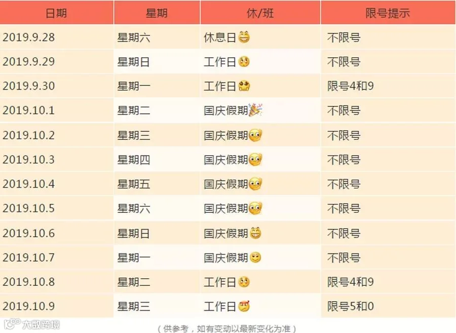 导读:明天就是十一长假了,今天是9月份的最后一个工作日。车主请注意:今天依然限号4和9为了更好的服务大家十一长假出