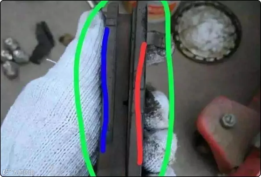 8、悬架问题,这种情况应该属于单边制动不足或单边拖滞所致。如果是同一个车轮的两个刹车片磨损不均,应着重检查刹车片材料是否一致,制动分泵的回位是否良好,分泵支架是否变形。如果是左右两个轮之间的磨损不均,应着重检查同轴左右两边制动器制动时间是否一致,悬架是否变形,悬架车身底板是否变形,悬架螺旋弹簧弹力是否下降等。