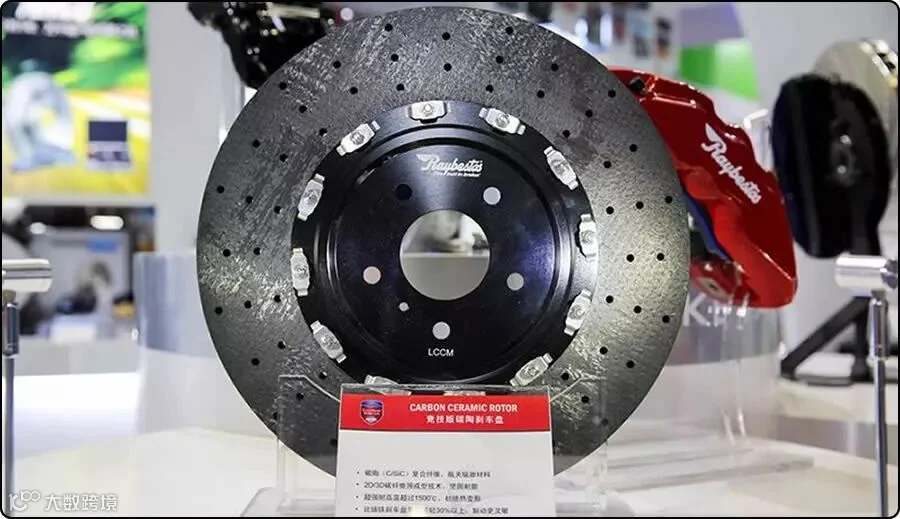 通常刹车盘的材料为灰铸铁,目前市场上已经出现一种更高端的陶瓷刹车盘,由于成本高,陶瓷刹车盘广泛应用在超级跑车上。无论是在制动性能还是散热性方面,陶瓷刹车盘都比普通钢制刹车盘优异很多,其使用寿命是普通钢制刹车盘的四倍。陶瓷刹车盘是在1700度高温下碳纤维与碳化硅合成的增强型复合陶瓷。陶瓷刹车盘不会生锈,几乎没有热衰退,制动力强等等优势。