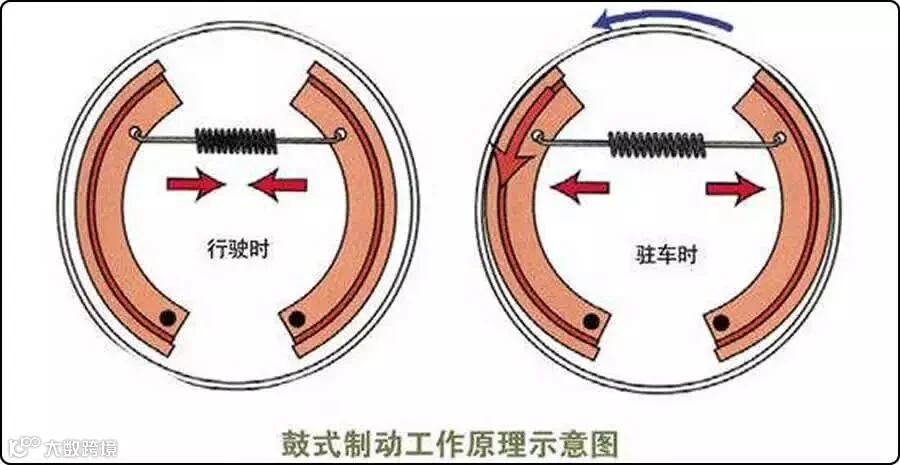 鼓式制动器工作原理示意图