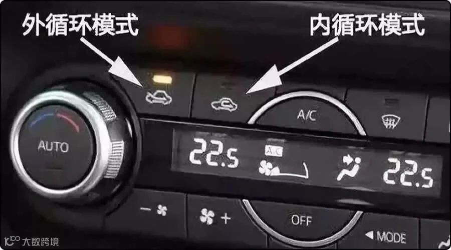 这个时候我们就可以开空调了,开空调有几个小技巧,首先先要打到外循环,这样做就是让车子里面和外面的空气产生对流。