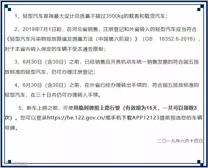 现在帮您正确解读一下河北省生态环境保护厅等五部门下发的《关于实施第六阶段国家轻型汽车大气污染物排放标准的通告》要求: