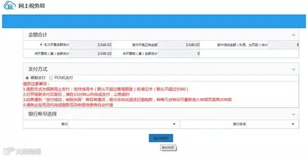 第八步:税款支付界面,选择支付方式进行款缴纳。