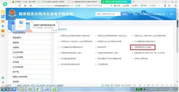 第三步:点击车购税申报,进行申报。