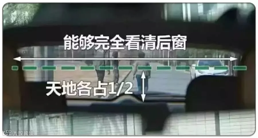 中央后视镜调整:首先要保持一个规范的坐姿,之后抬头调整后视镜,调整到能完全看清后窗外景物,并且天地各占二分之一便可以。