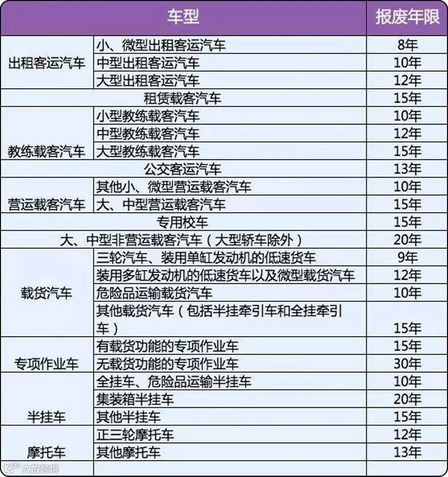 需要注意的是:虽然私家车报废年限已取消,这下面这些车型并!没!有!取消,一旦到了年限就会面临报废!