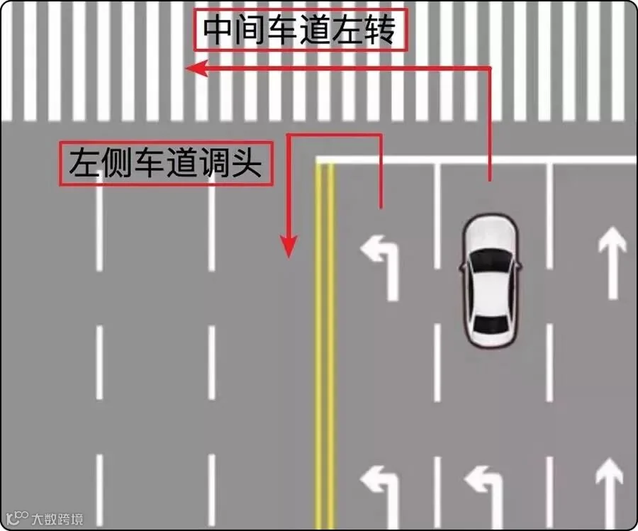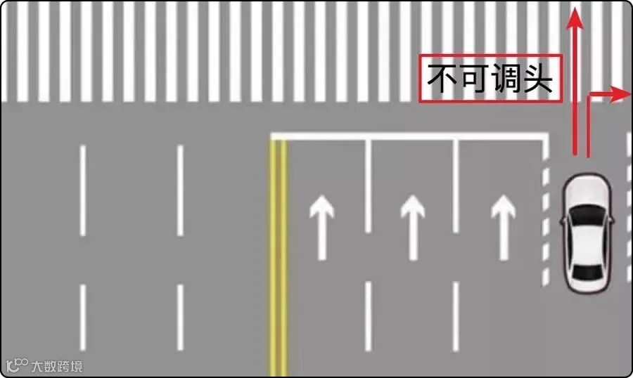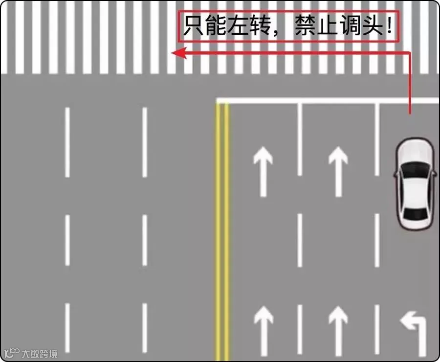 5、如果左转车道在最右侧,只能左转,禁止调头。