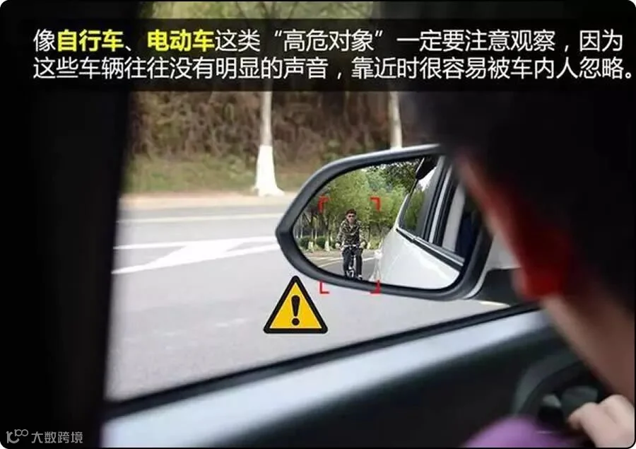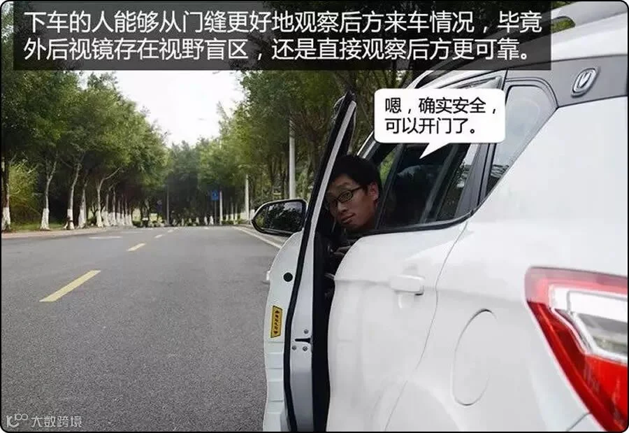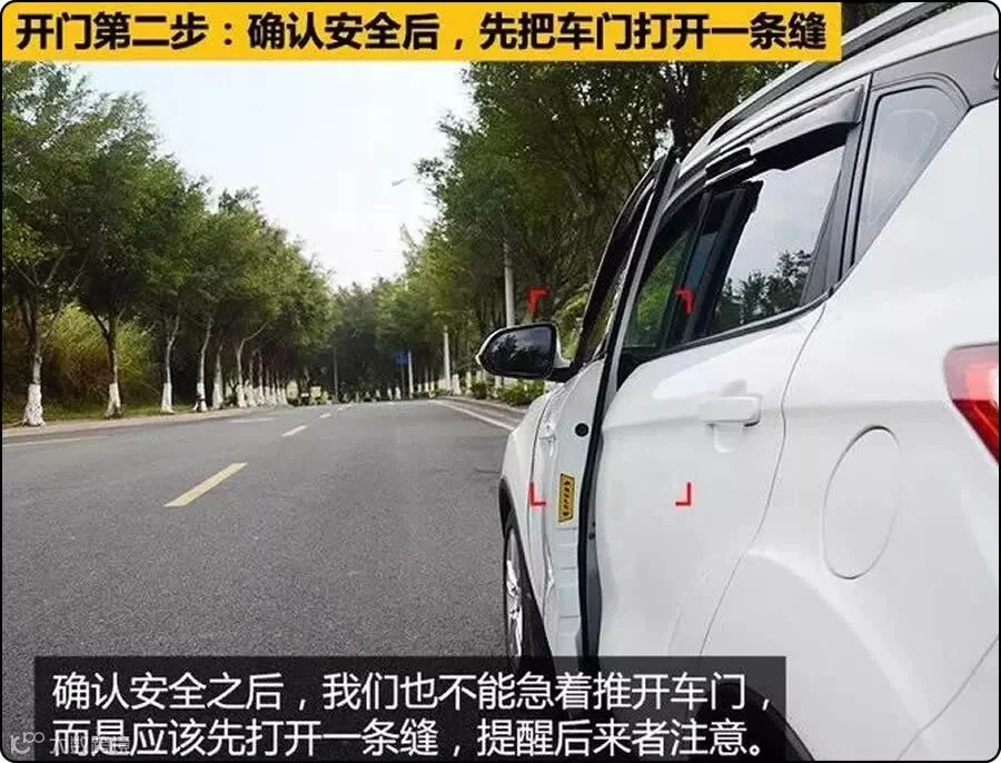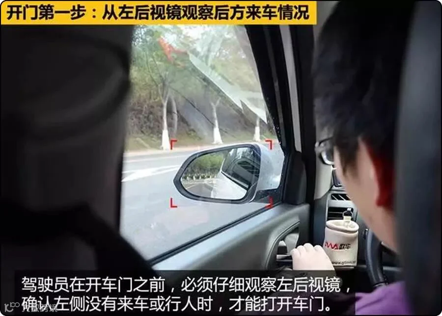 对于驾驶员来说,在打开车门之前,首先要做的事情就是观察左后视镜,确认后方是否有车辆靠近。