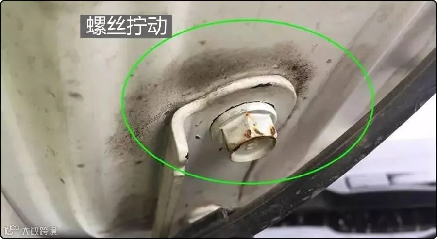 如果说这辆车拆卸过又重新上漆了怎么办呢?那就可以对比螺丝和它周围的漆面是否有色差,你想想现在有些4S店喷的漆都可能略有色差,更别说那些没有正规厂家培训的修理厂了。