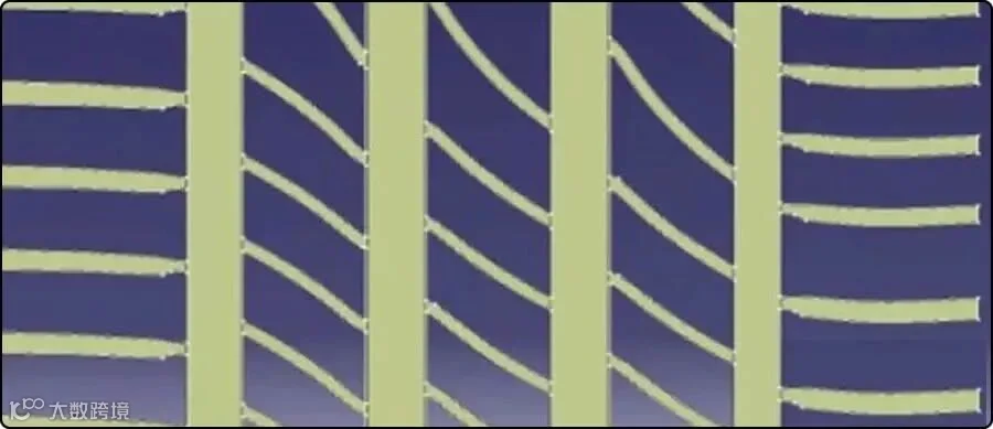 蓝紫色部分是花纹块,与地面直接接触;黄色部分为花纹沟