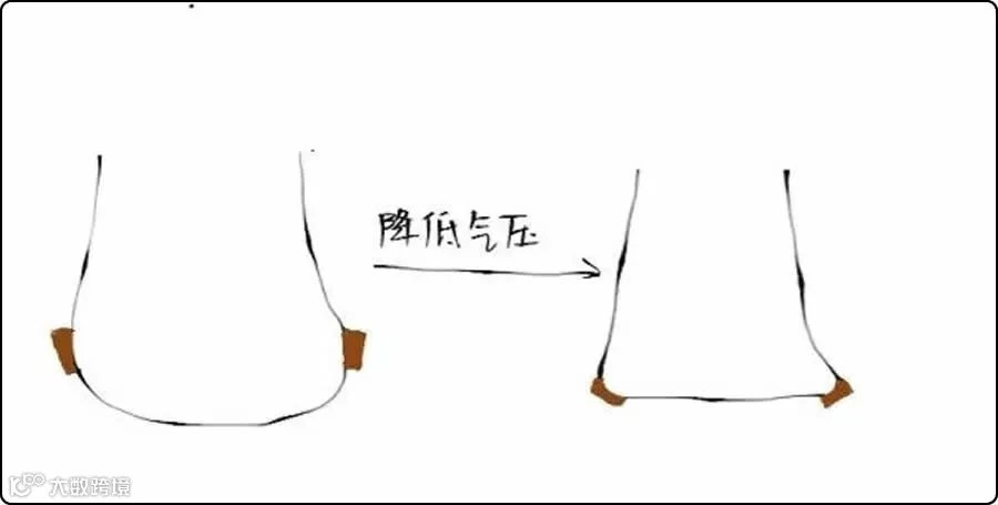气压降低后,即使无法被纳入到花纹沟中的大障碍物,也可以被胎面包裹住,而对车轴的作用力非常小,被称为轮胎的包容特性,这也是轮胎可以减震的原因。