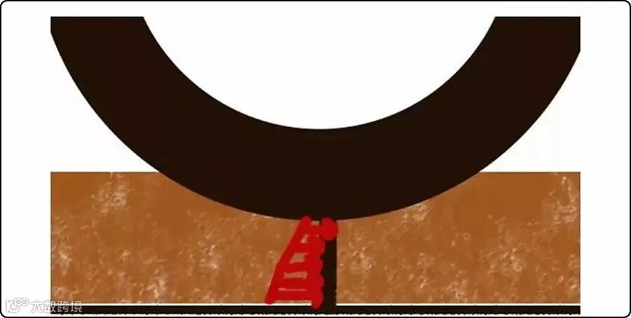 如下图,当花纹深入到泥(土)、坚实的积雪中时,会受到一个分布载荷的作用,越深入地面,作用力越大;如果花纹沟足够深,则可以与底部坚实路面则会产生分子粘附和齿轮啮合。所以越野轮胎的花纹沟深要比普通轮胎大。