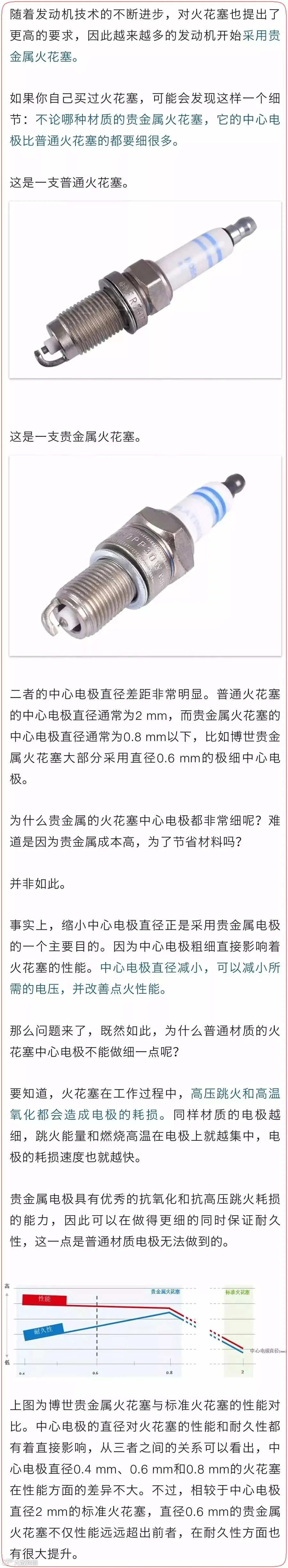 为什么贵金属火花塞的中心电极都非常细?