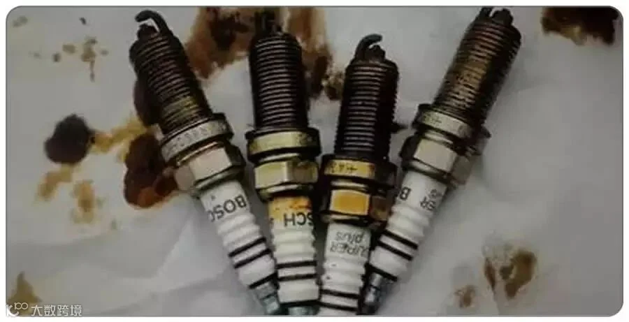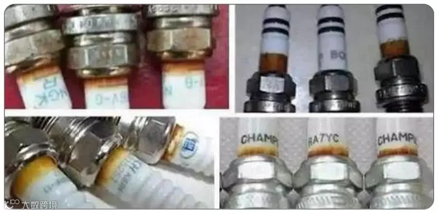 下图右边是一只因为没有上紧,漏气,被高温高压气体吹黑的火花塞。