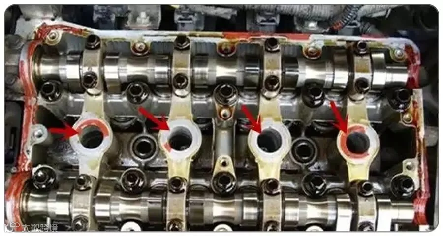 气门室垫老化到一定程度后机油漏入火花塞孔,就会让火花塞浸油,让点火线圈(缸线)浸油,这就会影响到火花塞的正常工作了。如下图所示。