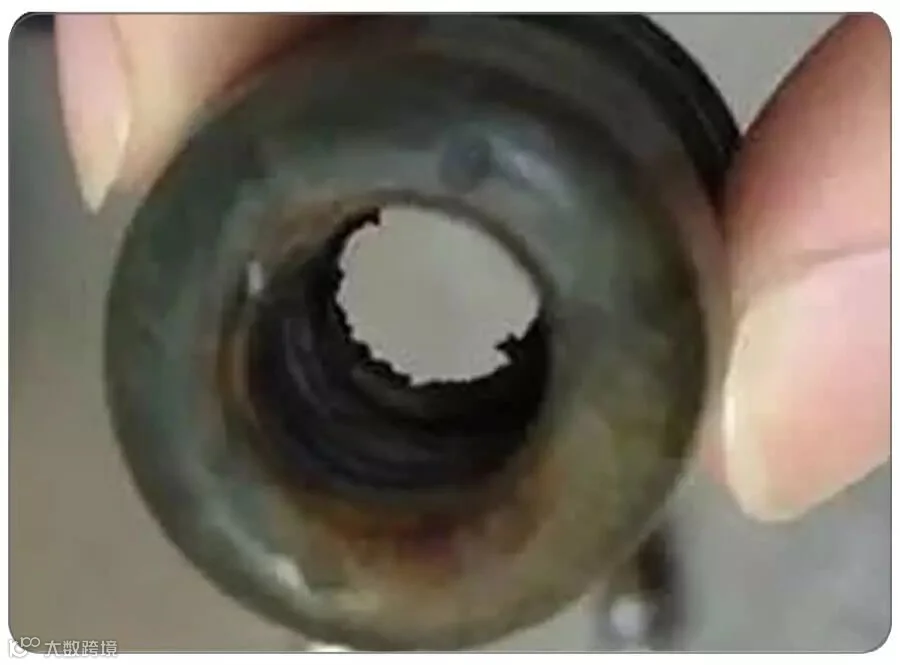 因为严重没上紧、漏气,导致电极过热提前点火的火花塞,电极瞬间达到1000-3000℃被烧融,陶瓷体因为发动机发生爆震而碎裂,这起火花塞事故导致发动机报废。可以看到,它的垫片全是鼓着,一点都没压平。