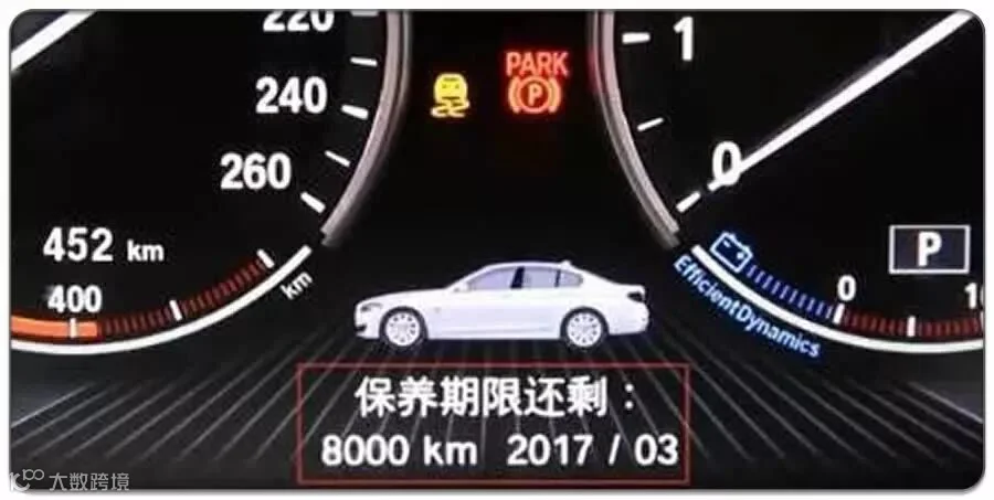 如果这个公里数到零时,电脑根据上次的保养记录会自动显示oil service 或inspection, 当显示oil service时就表示需要作机油保养(换机油和机油过滤器)当显示inspection时就表示需要作大保养。如果到期时还没有作相应的车辆保养, 公里数就会显示负数,如显示oil service —1800km则表示换机油时间超过原厂要求1800公里。