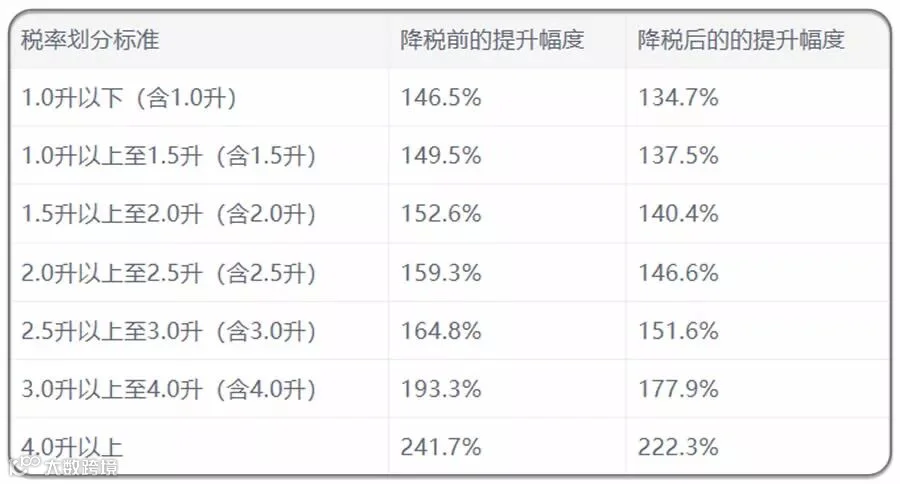 可以看到下调关税后,排量1.0L以下的汽车成本会从原车价的146.5%下降至134.7%,排量4.0L以上的大排量车成本甚至会下降19.4%。而从目前各个厂家的反应来看,这部分成本的下降将很有可能转为消费者买车时的福利。
