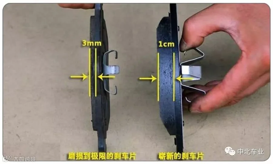 碟刹的刹车皮摩擦层剩余厚度是否足够,以3毫米为基准点;