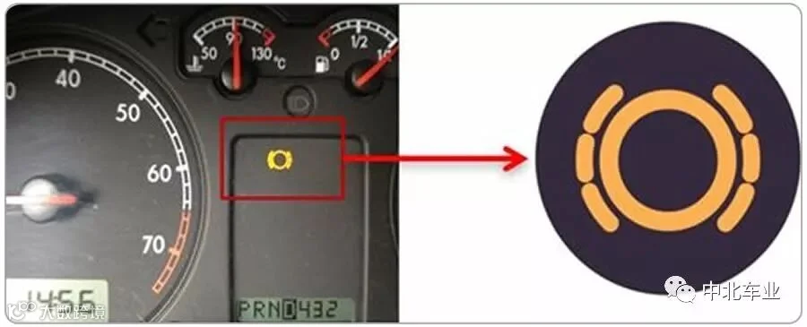 一般报警会出现一个红色的字“请检查刹车片”。然后有个图标,是一个圆圈,外面是几个虚线括号包围着的。一般出来显示就表示接近极限了,需要立刻更换。