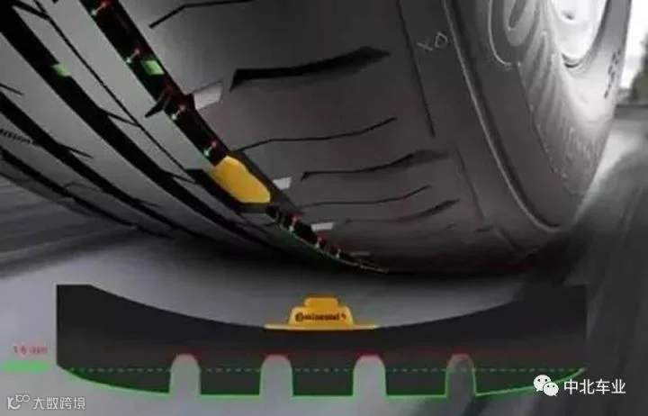 这项技术和胎压监测有点儿异曲同工之妙。德国马牌在制胎时将传感器嵌入轮胎的磨损临界点当中,并且传感器还能将胎面的厚度量化后显示在仪表盘上,驾驶员可以随时了解车辆的轮胎磨损到哪个位置了。而一旦轮胎磨损到极限,传感器就能立刻触发警报,驾驶员也能在第一时间知晓,进而避免了爆胎等意外的发生。