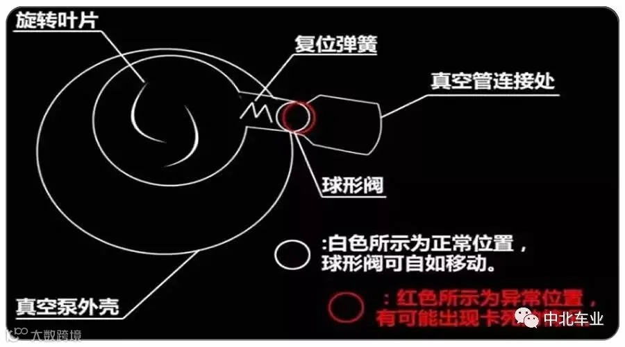 无论是借助发动机本身的真空泵还是独立产生真空的泵,都有一根带有单向阀的真空管连接到真空助力器。这个单向阀是个塑料材质的小球,长期的开闭动作容易使它磨损,从而出现卡死的情况,也就无法提供正常的真空了。