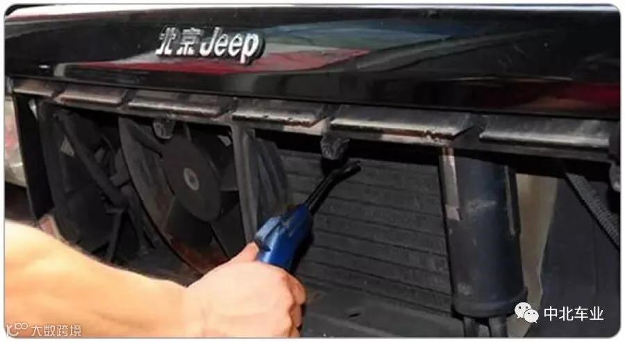 若汽车长期闲置,极易使异物、脏物附着于散热器上,久而久之,便会影响发动机散热效果。可先用压缩空气吹灰器清理,再用水管冲洗。