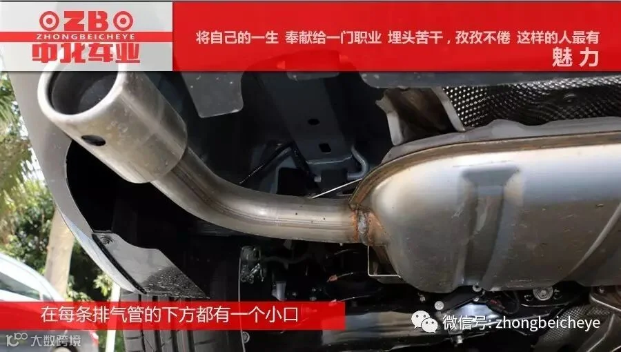 有没有朋友会担心排气管的水流不出来?这点设计人员也有考虑,在每条排气管的下方都有一个小口:一是为了排水,二是为了防止涉水时候因为排气角度问题水不能正常流出。