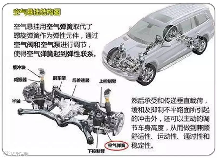 以前在看到有些车型的配置表时,会发现有一个叫空气悬架的项目,一直不知道是何物,后来,专门地去了解了下,下面,就着题主的问题,就来和大家一起来聊聊这个空气悬挂(架)吧。