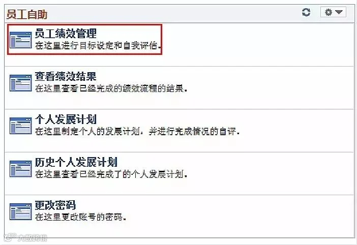 并在主页点击员工绩效管理,在这里进行目标设定和自我评估!如下图: