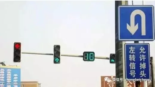 有一些路口会有辅助的标志来告诉车主是否可以掉头,例如在这个路口,当左转灯是绿色时,是可以掉头的,如果左转红灯时掉头,就按照闯红灯处理。