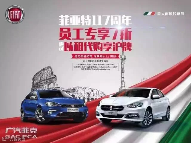 除了有贴心的试驾活动,我们还给内部员工们带来了超值福利!即日起至8月31日,上海交运起恒4S店购买菲亚特指定车型,尽享限时特惠7折!省下的钱钱可以来次说走就走的旅行呦!