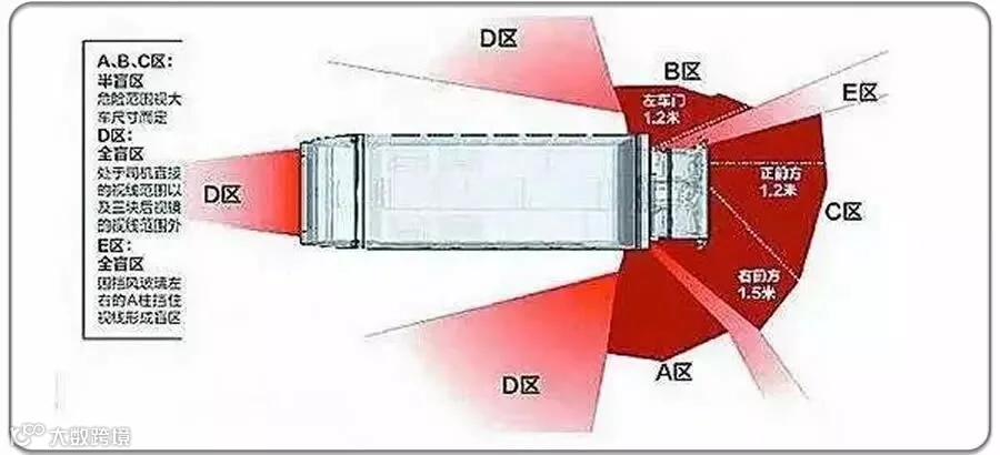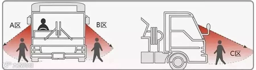 不管你在红色区域的哪里,驾驶人叔叔都看不到你!
