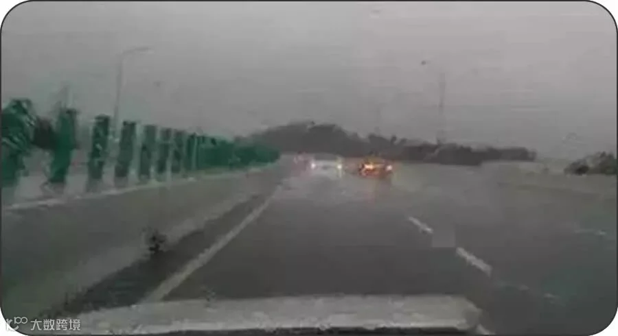 这张照片中,中间车道这辆车开了后雾灯,它成了这段路最耀眼的“明星”,这条路上还有一辆什么灯也没开的“幽灵车”,仔细找找看它在那里?大雨中不开车灯,后果可大可小。