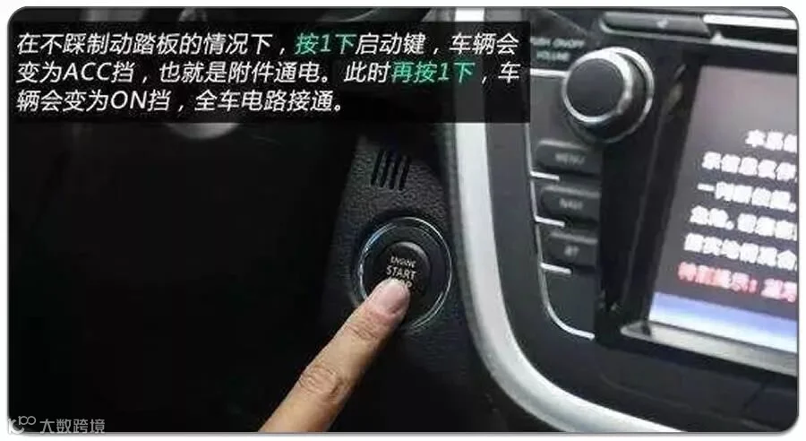 不踩刹车直接按下启动按钮,即可打开车内部分电源。连按两下即可打开车内全部电源,汽车进入自检程序,此时车窗升降,也可以使用了。