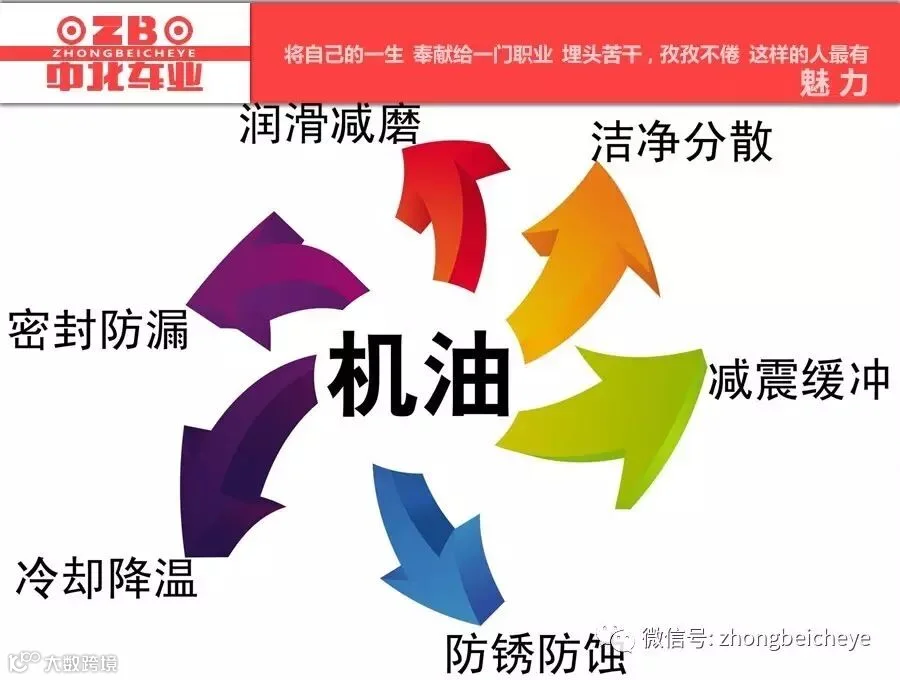 首先来说就是润滑减磨,零件之间肯定会有摩擦的,久而久之就会磨损,机油可以帮助零件之间减少摩擦!再一个是达到冷却的作用,一般来说工作的时候油箱里的温度灰常之高,机油能够将热量带回机油箱再散发到空气中帮助水箱冷却发动机,所以这个很有用的。它还有清洗清洁的作用,一般来说,发动机用久了都会有杂质,人久了都会生病,何况是发动机呢,而好的机油就能随着机油的流动带走这些杂质,冲掉脏物。对了,它还有密封防漏的作用,这个大家都知道的,这是油的特质,隔绝水隔绝空气,机油可以在活塞与活塞环之间形成密封圈,这样外面的杂质不能进来,气体也不会泄露,更一步提高了防锈防腐蚀的程度哦,是减震缓冲的作用,当发动机气缸口压力急剧上升,突然活塞、活塞屑、连杆和曲轴轴承上的负荷很大,这个负荷经过轴承的传递润滑,让承受的冲击负荷起到缓冲的作用。