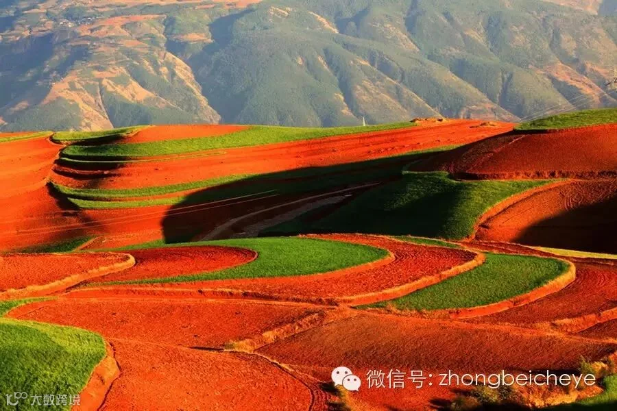 这里云南东川红土地被专家认为是全世界除巴西里约热内卢外最有气势的红土地,而其景象比巴西红土地更为壮美,被誉为“上帝打翻的调色板”!9月开始,裸露出迷人的火红泥土,加之光线的折射,五彩斑斓,有一种波澜壮阔的柔美,好似一幅绚丽的油画!