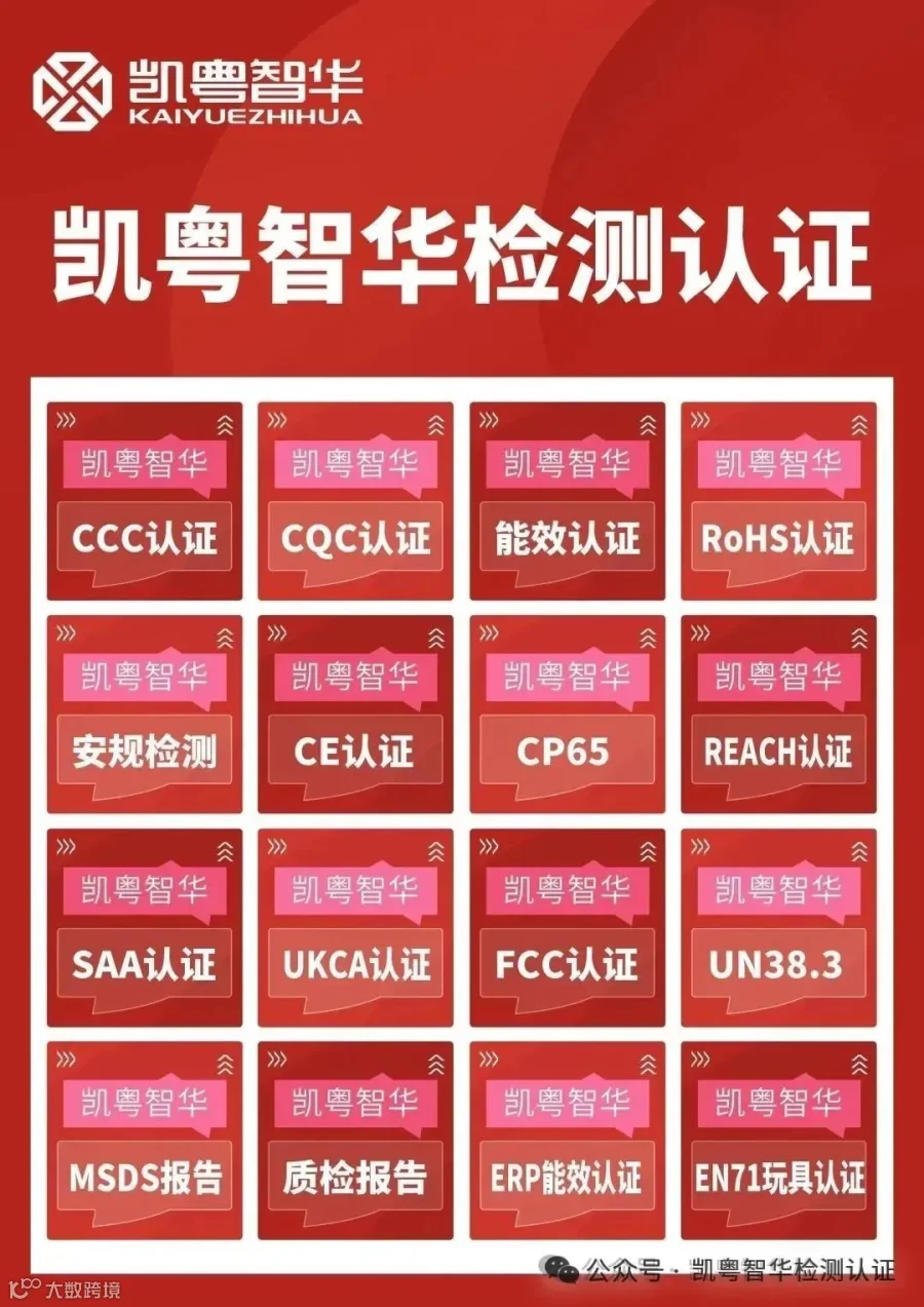 广州凯粵智华检测技术服务有限公司是隶属于凯粤知识产权代理有限公司旗下子公司,是一家专业从事多国产品安全检测和认证咨询的知名服务机构。一直以“公平、公正、准确、严谨”为准则,严格按照 IS0/IEC17025 检测和校准实验室管理体系要求进行科学管理。配备专业齐全的检测设施,并且拥有经验丰富的检测认证专家团队。我们主要提供机械设备、电子电器、无线产品、压力设备、建筑材料等产品安全的 CE 认证咨询和 ISO 体系认证咨询以及检测服务;同时我们开展玩具、RoHS 、REACH等多国产品认证检测服务,是国内第三方测试、检验及认证咨询领域内的佼佼者。