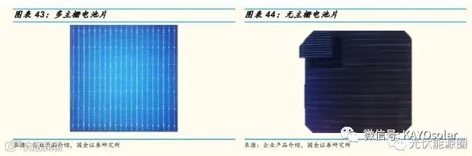 近年来,随着硅片尺寸变大、网印技术改进、硅片成本下降导致正极银浆成本占比增加,多主栅技术难度越来越小而性价比日渐提升,多主栅(Multi-Busbar,MBB)甚至无主栅电池的市占率逐步提升,2017 年起部分大厂开始推出多主栅电池片,预计未来将逐步成为主流。