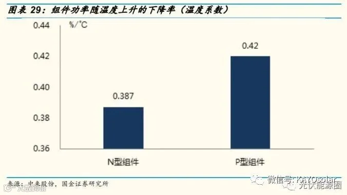工作温度低,减少温升带来的功率损耗。半片组件户外工作温度比常规组件低 1.6℃左右,按照组件功率温度系数-0.42%/℃计算,同等条件下半片组件比整片组件功率输出高 0.672%(按普通组件功率 280W 的估算,功率提高 1.88W)。