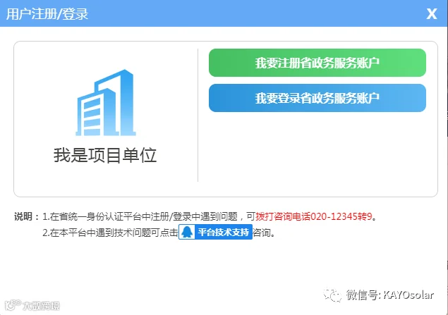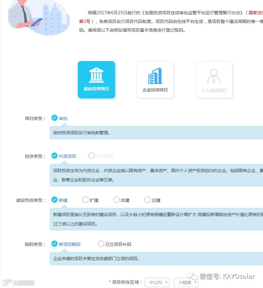 选择“我是项目单位”