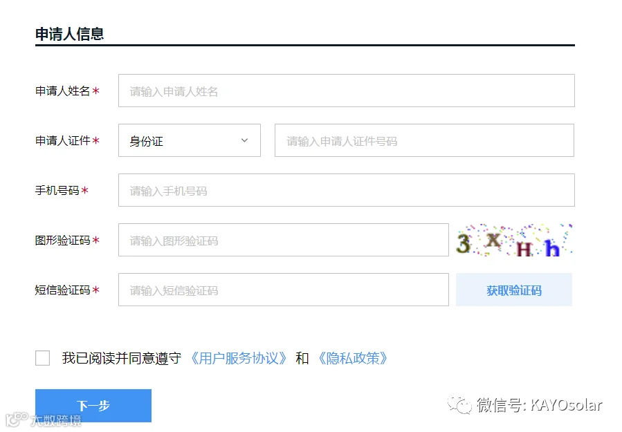 最后输入相关的申请人信息