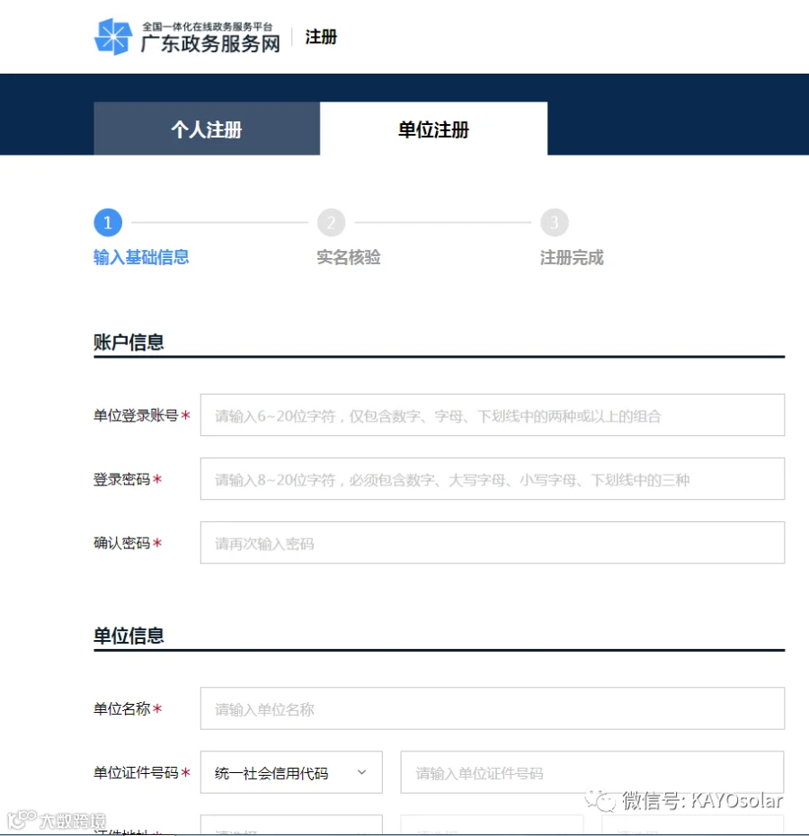 点击“单位注册”,然后按要求输入里你希望注册的单位信息,名称,统一社会信用代码等