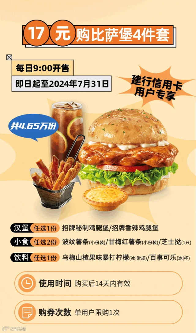 解锁717建行美好生活节 | 比萨堡4件套17元!!