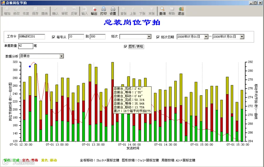 ☑ 结合节拍分析的产量统计与分析报表功能,为生产主管、工艺、质量管理人员提供实时的决策依据;