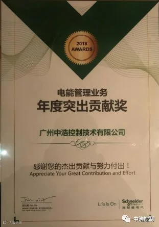 在会上,施耐德全国业务负责人总结了2018年成绩,广州中浩控制技术有限公司荣获“年度突出贡献奖”。