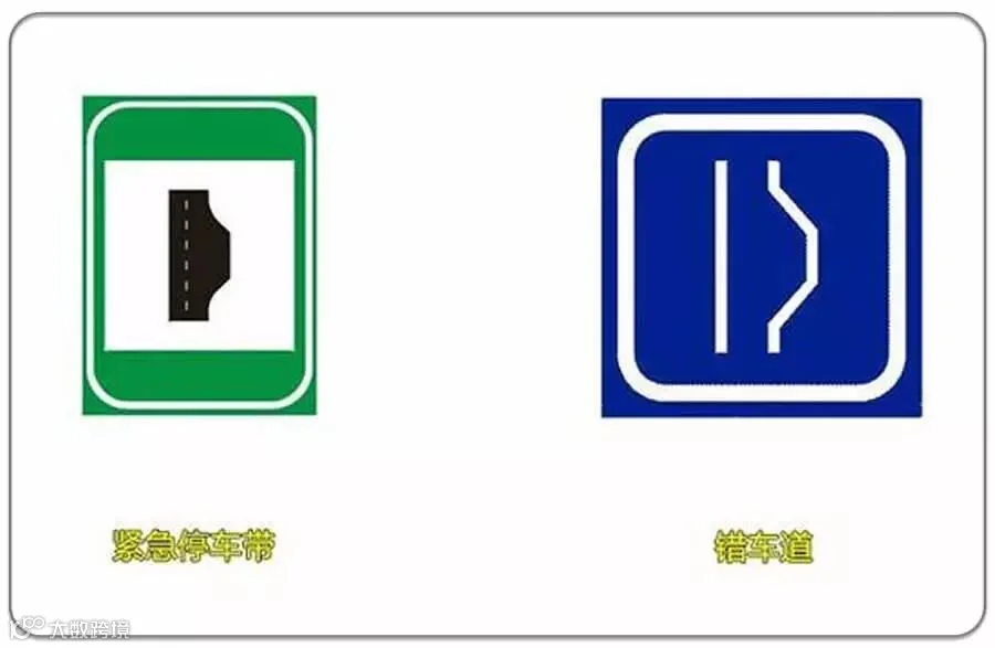 绿色代表救援,如遇突发情况可以将车停至安全地带,用于高速公路或省道,而错车道仅用于单行道。