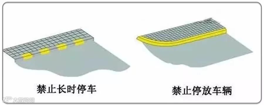 禁止停车:路面上出现这个标识的,说明这个地方停止停放车辆,一秒钟都不能停放,否者被拍到就会被罚款!