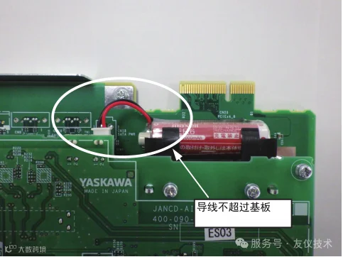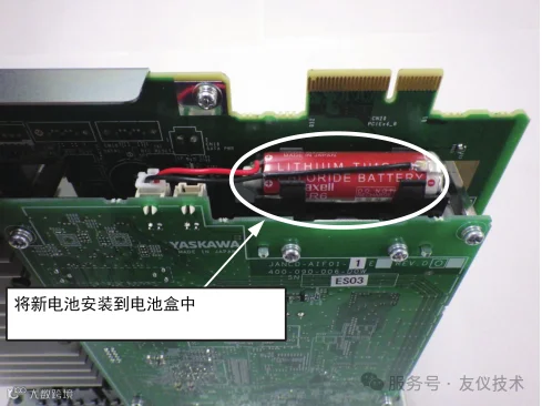 注意:示教编程器画面中显示信息“存储器电池已耗尽”后,请及时更换电(30 天之内)。更换电池时,打开断路器以防数据丢失。